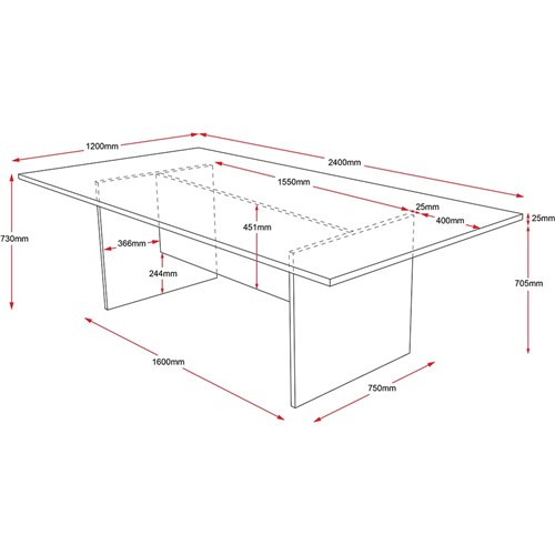 Rapidline Rectangle Boardroom Table 2400W x 1200D x 730mmH Cherry Top Ironstone Base