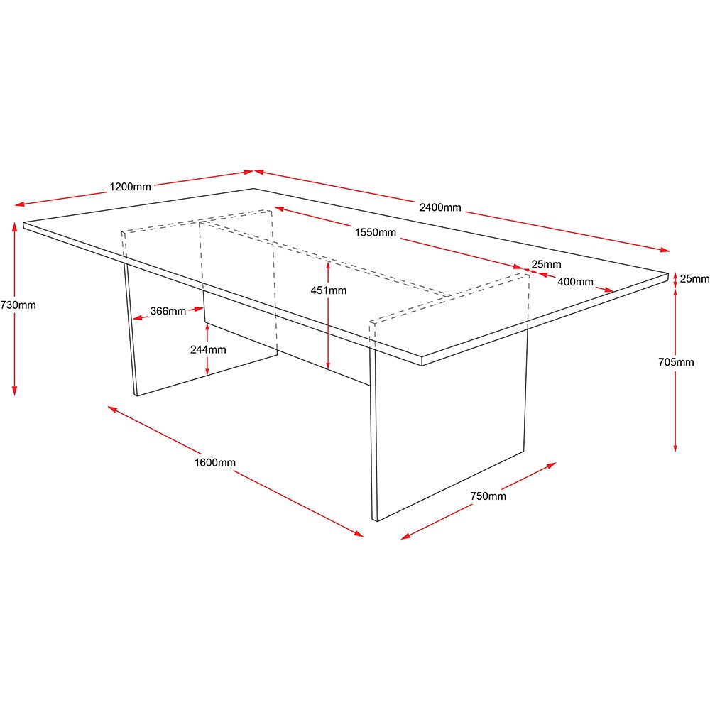 Rapidline Rectangle Boardroom Table 2400W x 1200D x 730mmH Oak Top Ironstone Base