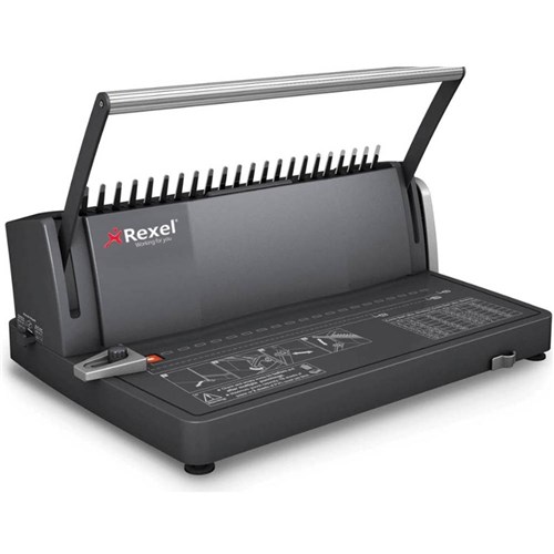 A compact manual comb binder ideal for light duty use in the home or small office for A4 documents.