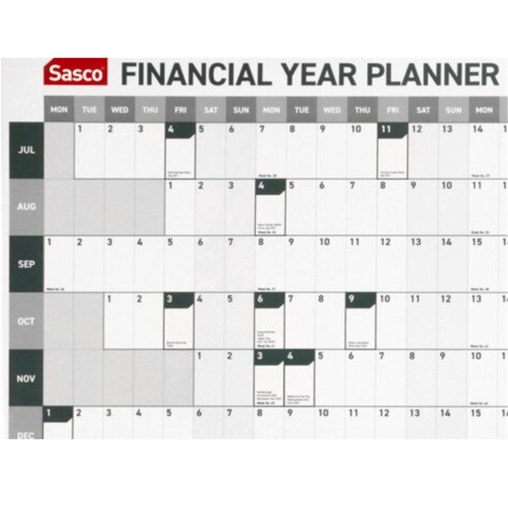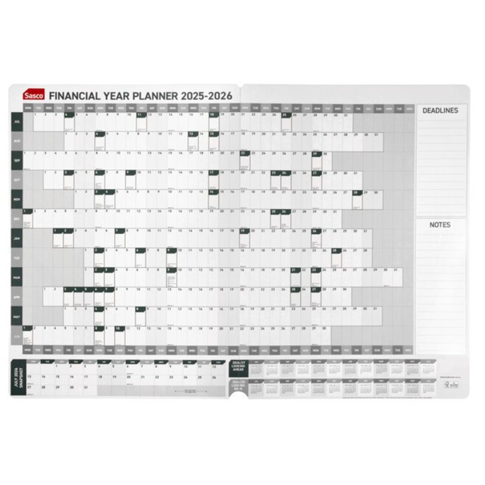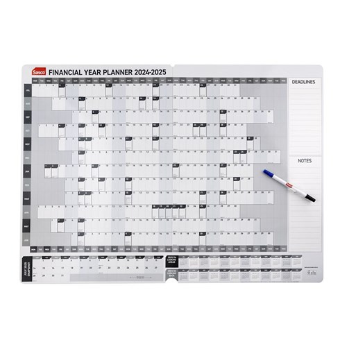 Sasco Financial Year Wall Planner 870 X 610mm Year To View Green
