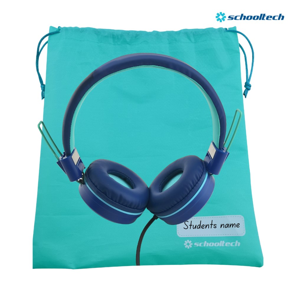 SchoolTech Extra Sturdy Headphones With Microphone 3.5mm Jack Teal/Navy Pack 50