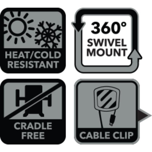 • Suction cup attaches securely to dashboard or window surfaces.