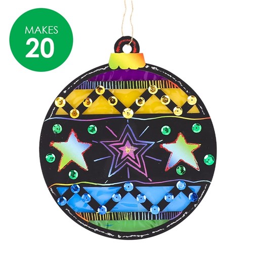 Group pack includes all components required to create and decorate 20 Scratch Board Baubles