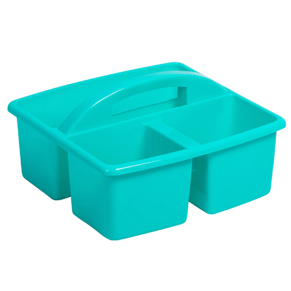 The 3 compartment caddy's feature an easy-carry handle, to be moved from desk to desk in all learning spaces.