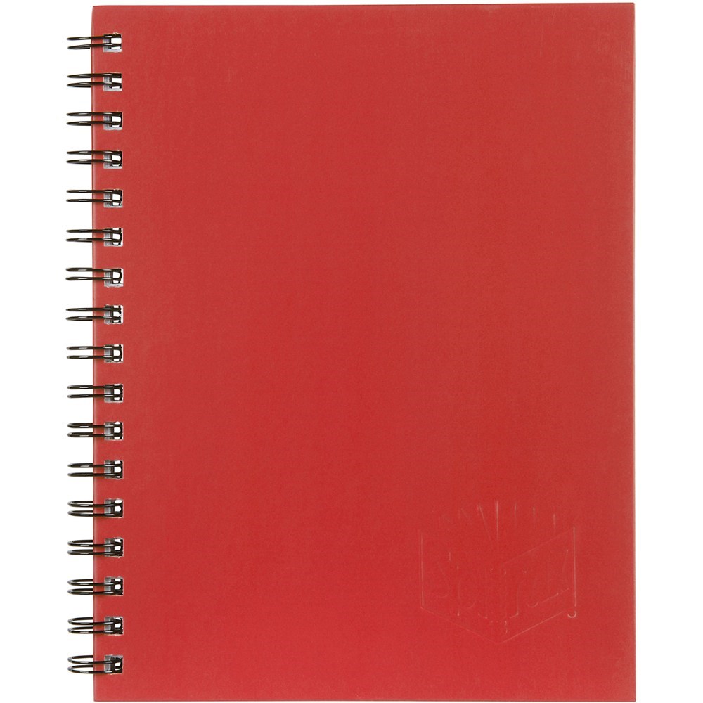 Spiral bound with a solid hard cover that won't dog ear or distort.