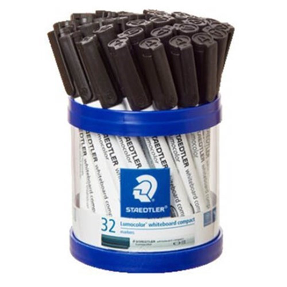 Staedtler Lumocolor Whiteboard Compact Marker Bullet Point Black Cardboard Cup of 32