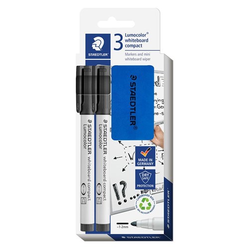 Staedtler Whiteboard Compact Marker Set 2 Black Bullet Point Plus Eraser