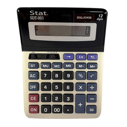 Stat Desktop Calculator 12 Digit Calculator Large Black And Silver