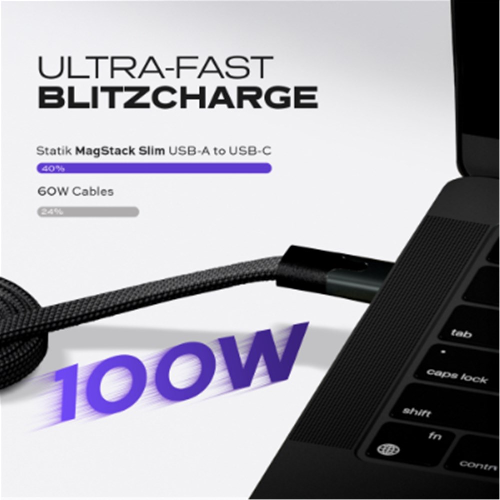 Statik MagStack Slim USB-A To USB-C Cable 1 Meter Black