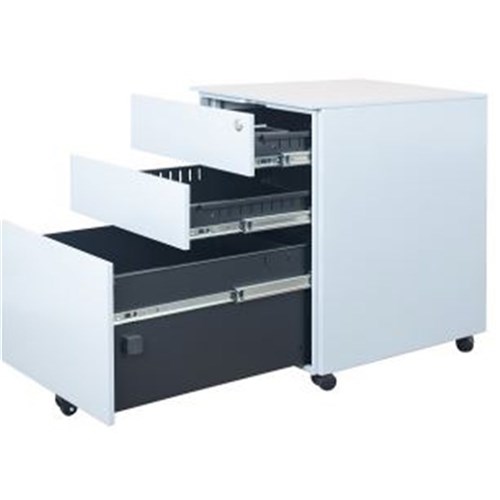 Steel Mobile Pedestal - 390W 2 Drawer + 1 File Drawer White