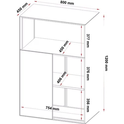 Steelco Modular Cupboard 800W x 450D x 1200mmH 2 Tier 1 Open Shelf White