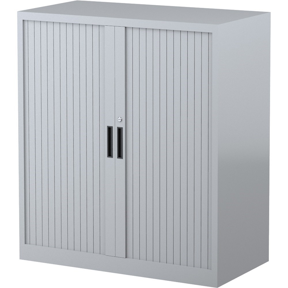 • Steelco Tambour Door Cupboard 1015Hx900Wx463mmD 2 Shelf Silver Grey
