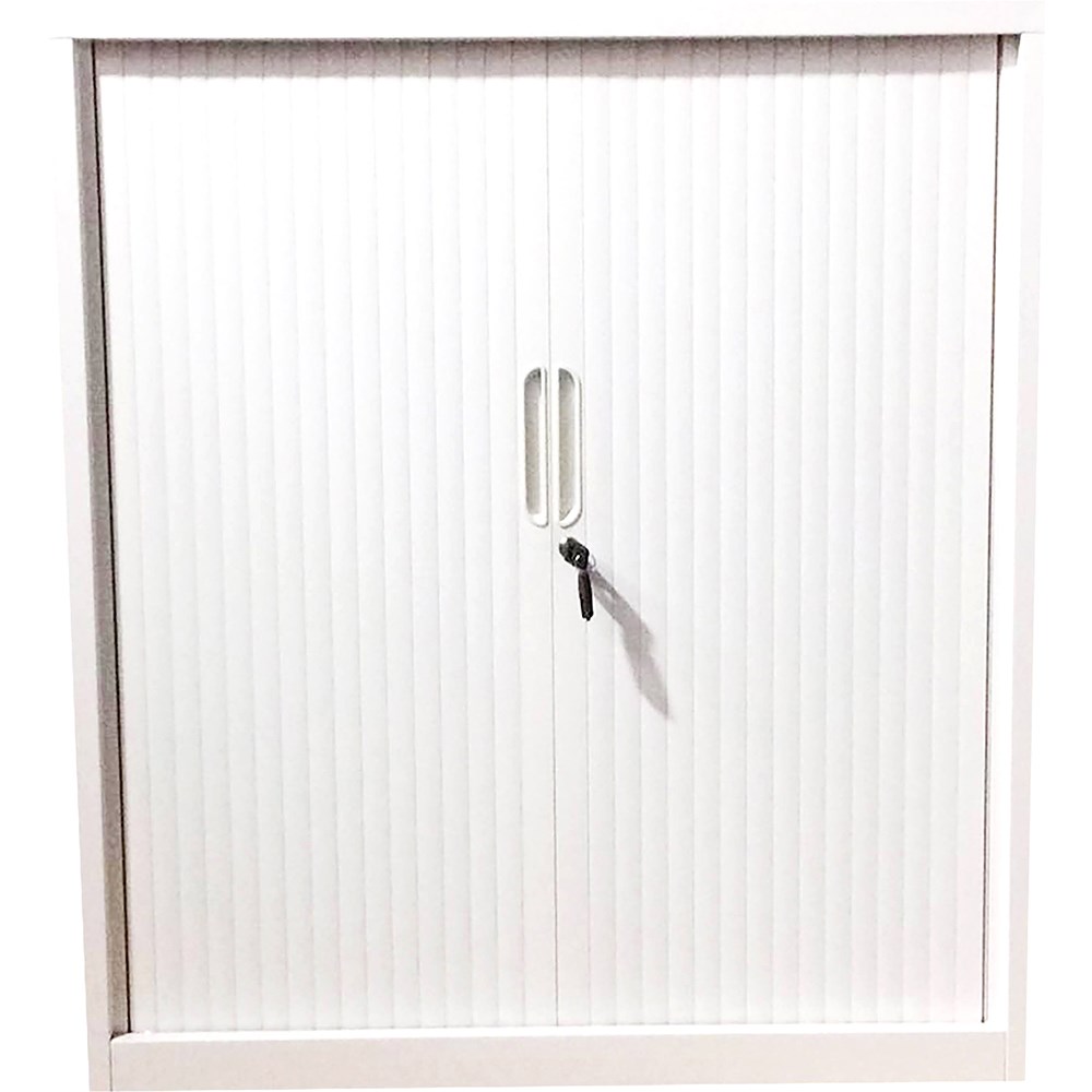 Steelco Tambour Door Cupboard 1015Hx900Wx463mmD 2 Shelf White Satin