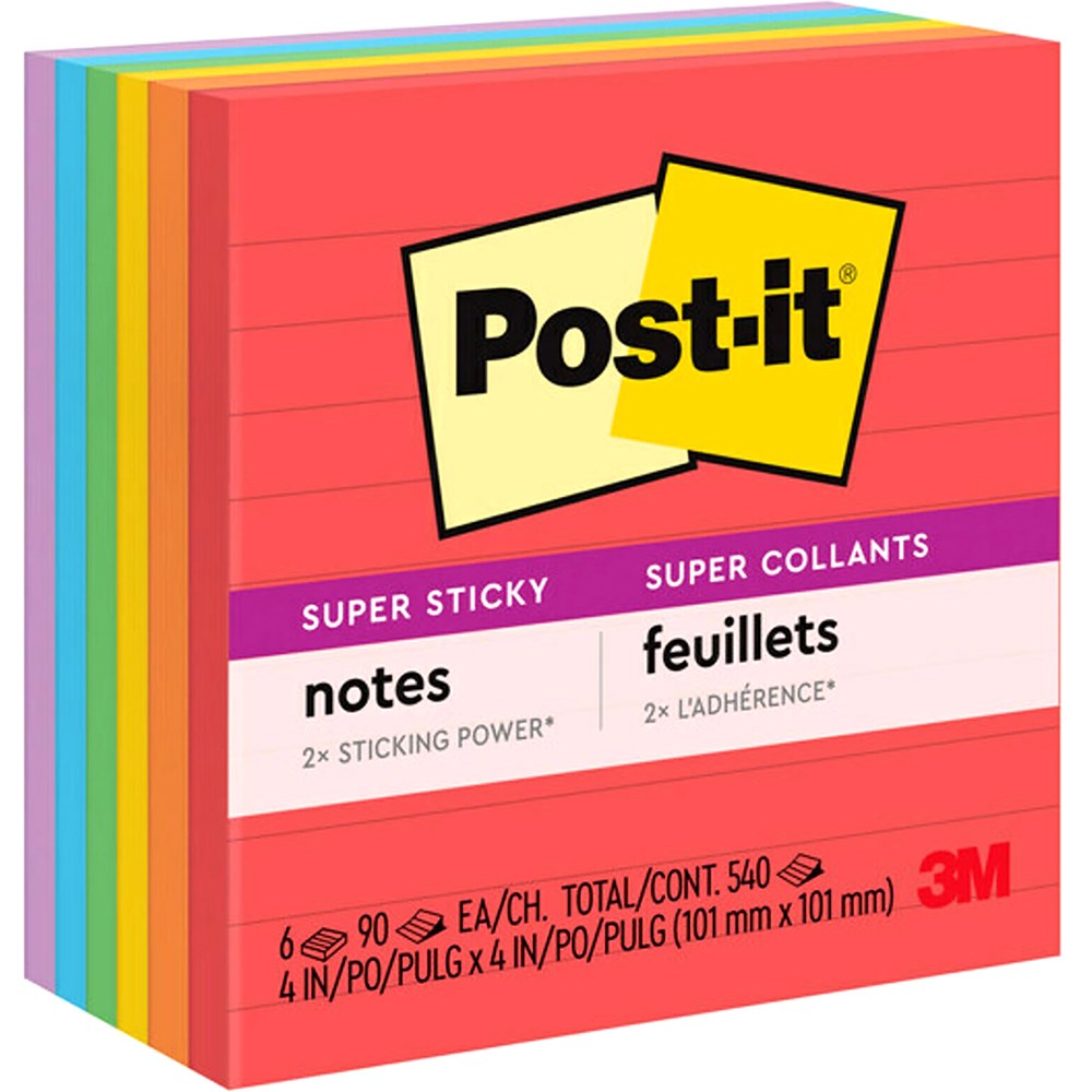 SUPER STICKY POST IT NOTES 675-6SSAN 98X98MM NEON LINED PKT 6