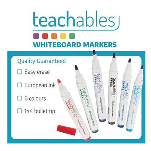 Teachables Whiteboard Markers Bullet Assorted Classroom Pack of 144