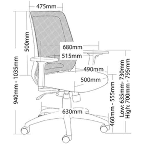 630mm black nylon 5 star base.