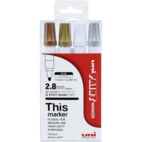Uni-Ball PX-20 Paint Marker Bullet 2.8mm Shiny Metallic Pack of 4