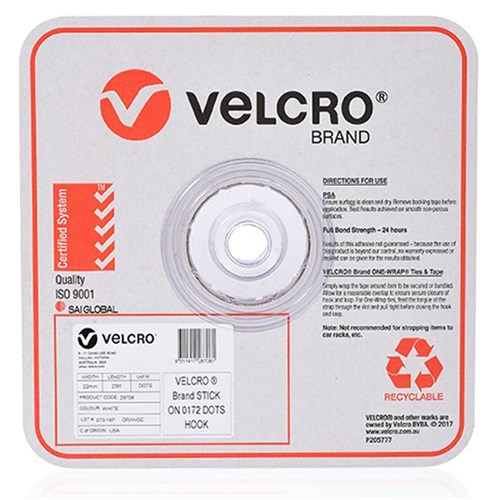 VELCRO Brand® general purpose hook dots are ideal for smooth surfaces and can be used indodors