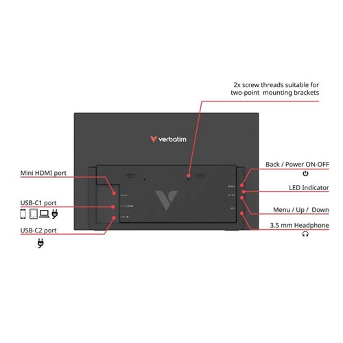 Verbatim Light Series Full HD 1080P Portable Touch Screen Monitor 14 Inch Black