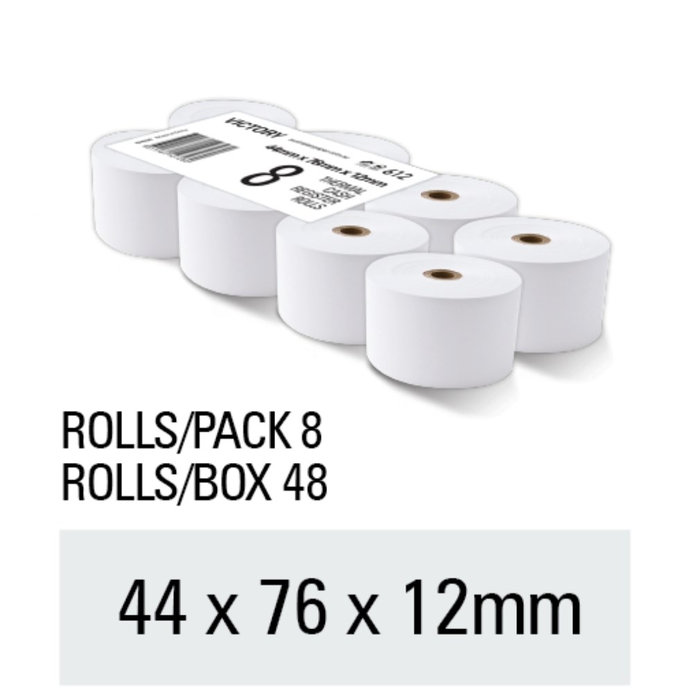 THERMAL CASH REGISTER ROLLS 44X76X11.5 pack8