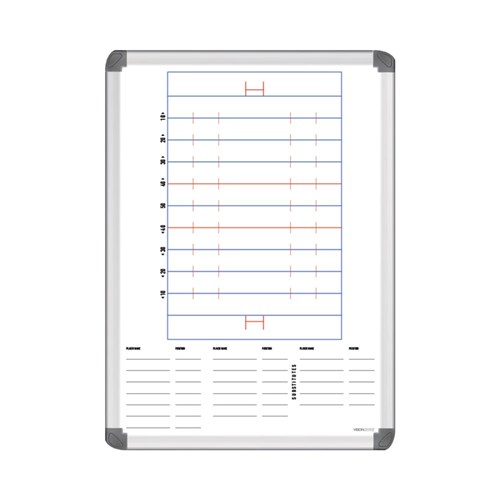 Visionchart Coaches Tactical Whiteboard 600 x 400mm Rugby Union Aluminium Frame