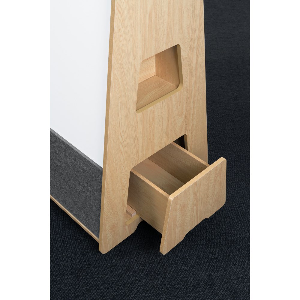 2x Magnetically attached (removable) acoustic panel pinboards: 940(W) x 335(H) x 18(D)mm