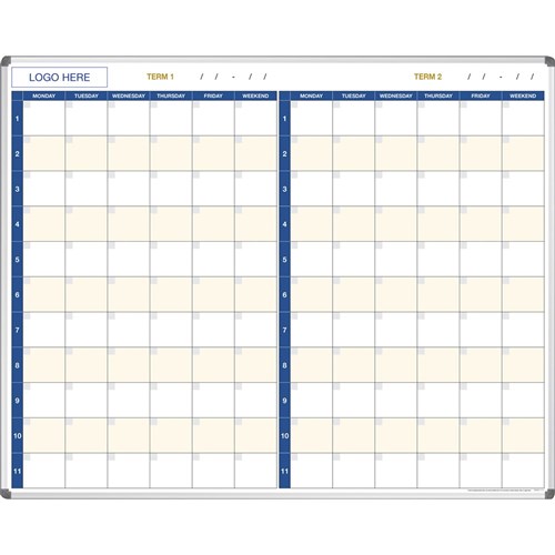 Visionchart Magnetic Stacked 2 Term School Planner Whiteboard 1500 x 1200mm