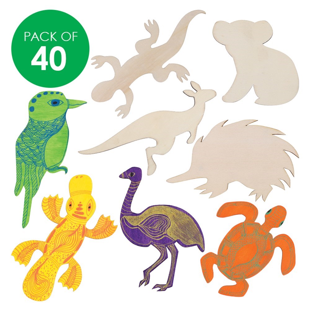 Pack of 40 Wooden Australian Animal Shapes