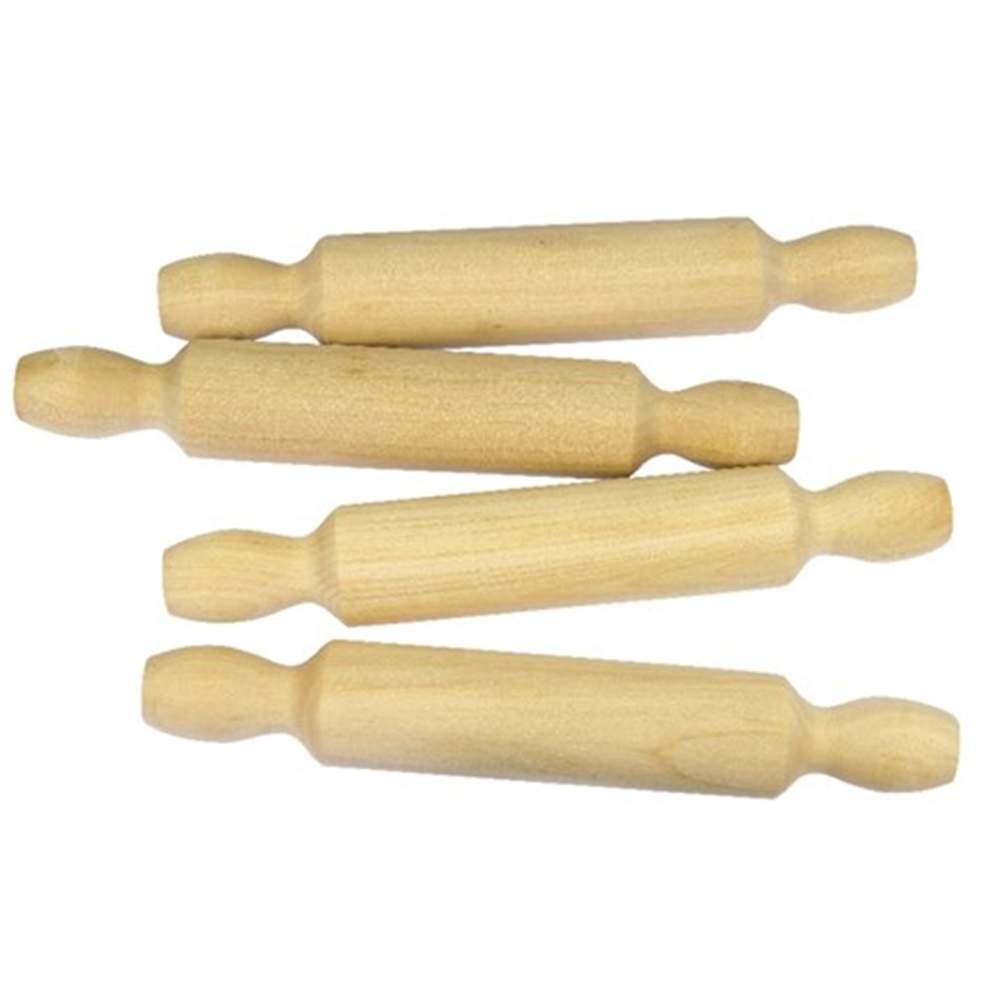 4 wooden rolling pins ideal for use with modelling clay and dough.