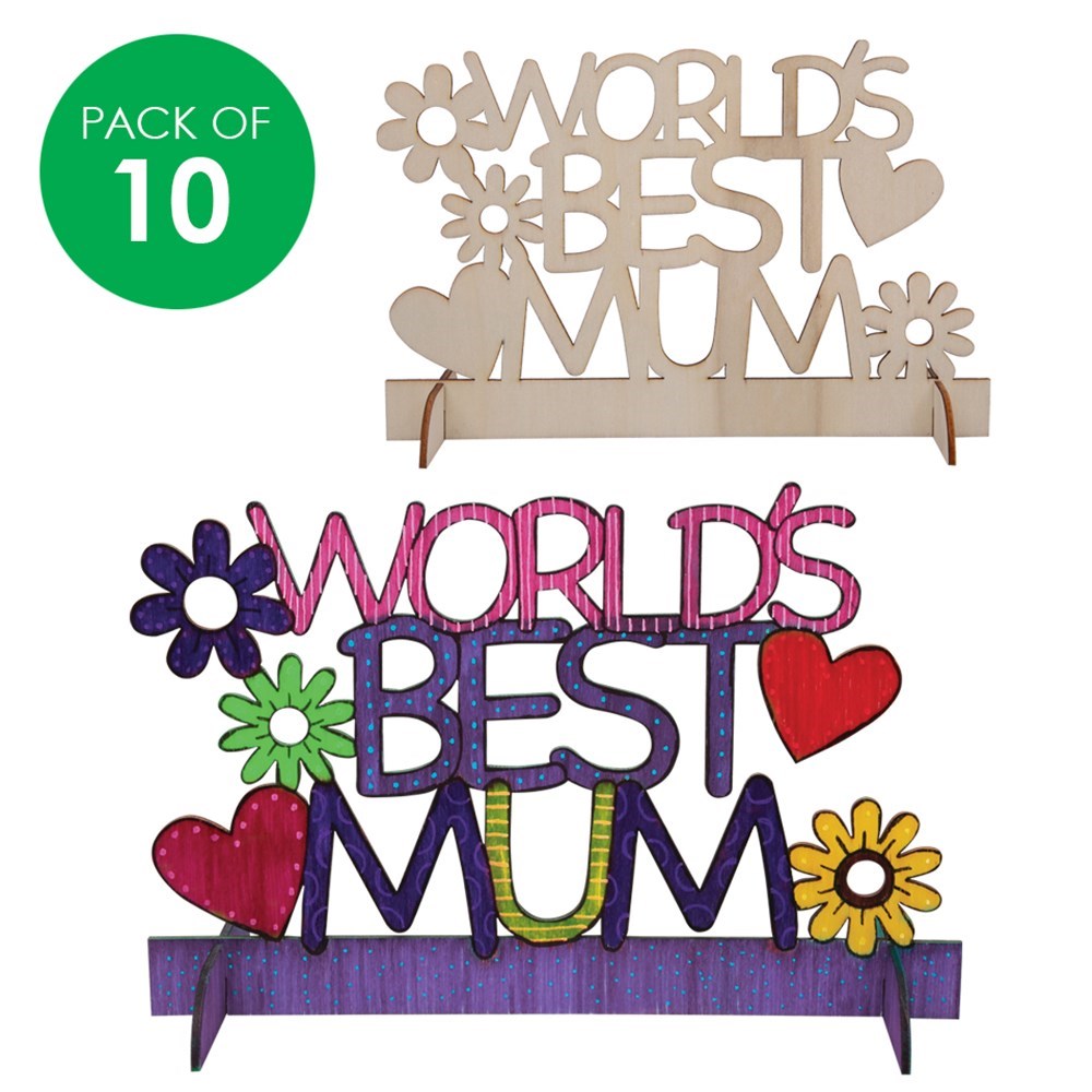 Wooden WORLD'S BEST MUM Plaques - Pack of 10