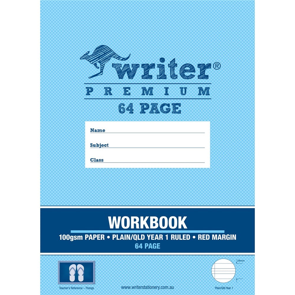 Writer Premium Workbook 330x245mm 64Pg Plain 1 Side/QLD Year 1 Ruled Thongs