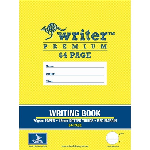 Writer Premium Writing Book 245x330mm 18mm Dotted Thirds 64 Pages Monkey