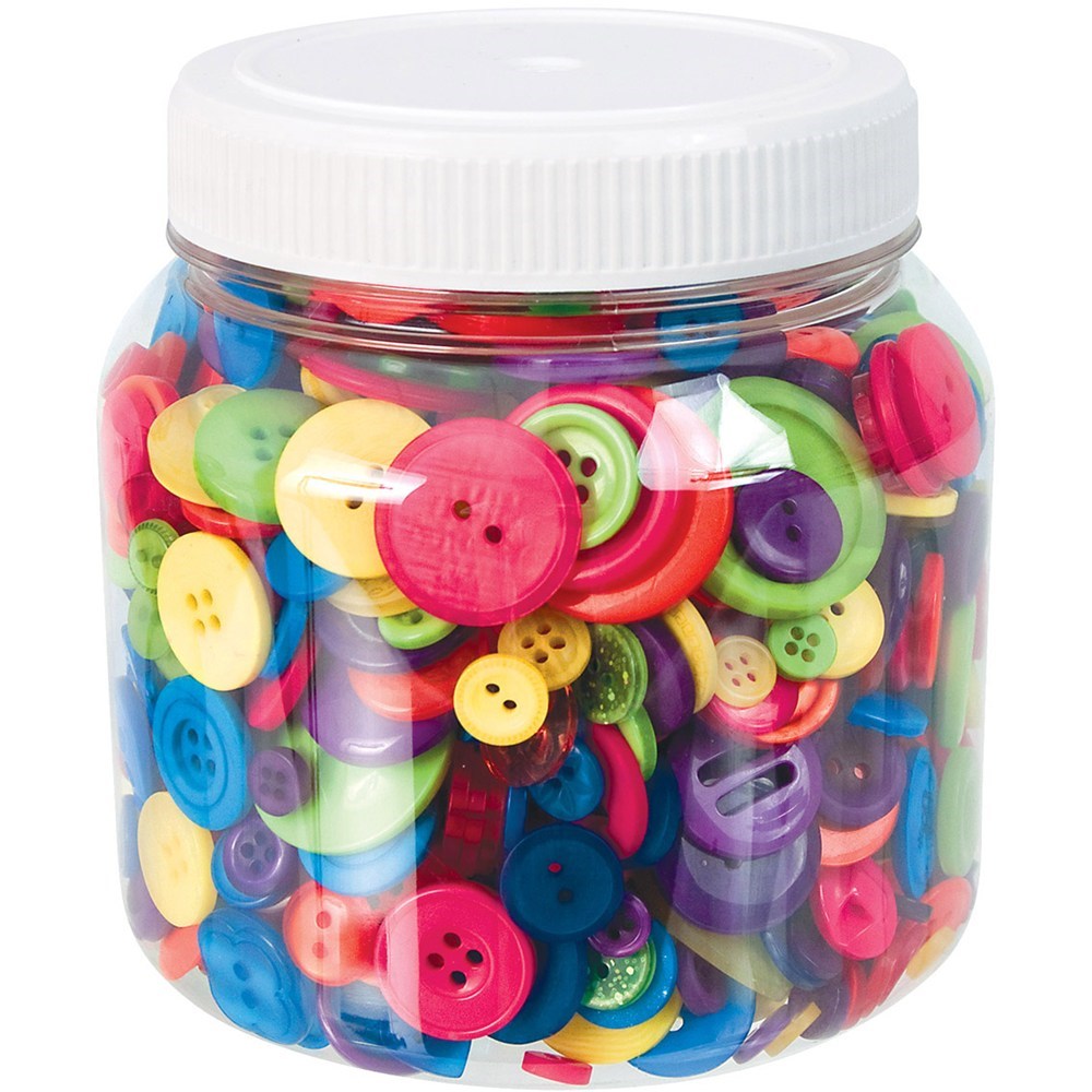 Zart Buttons Bright Assorted Colours Approximately 1400 Pieces Jar 600gm
